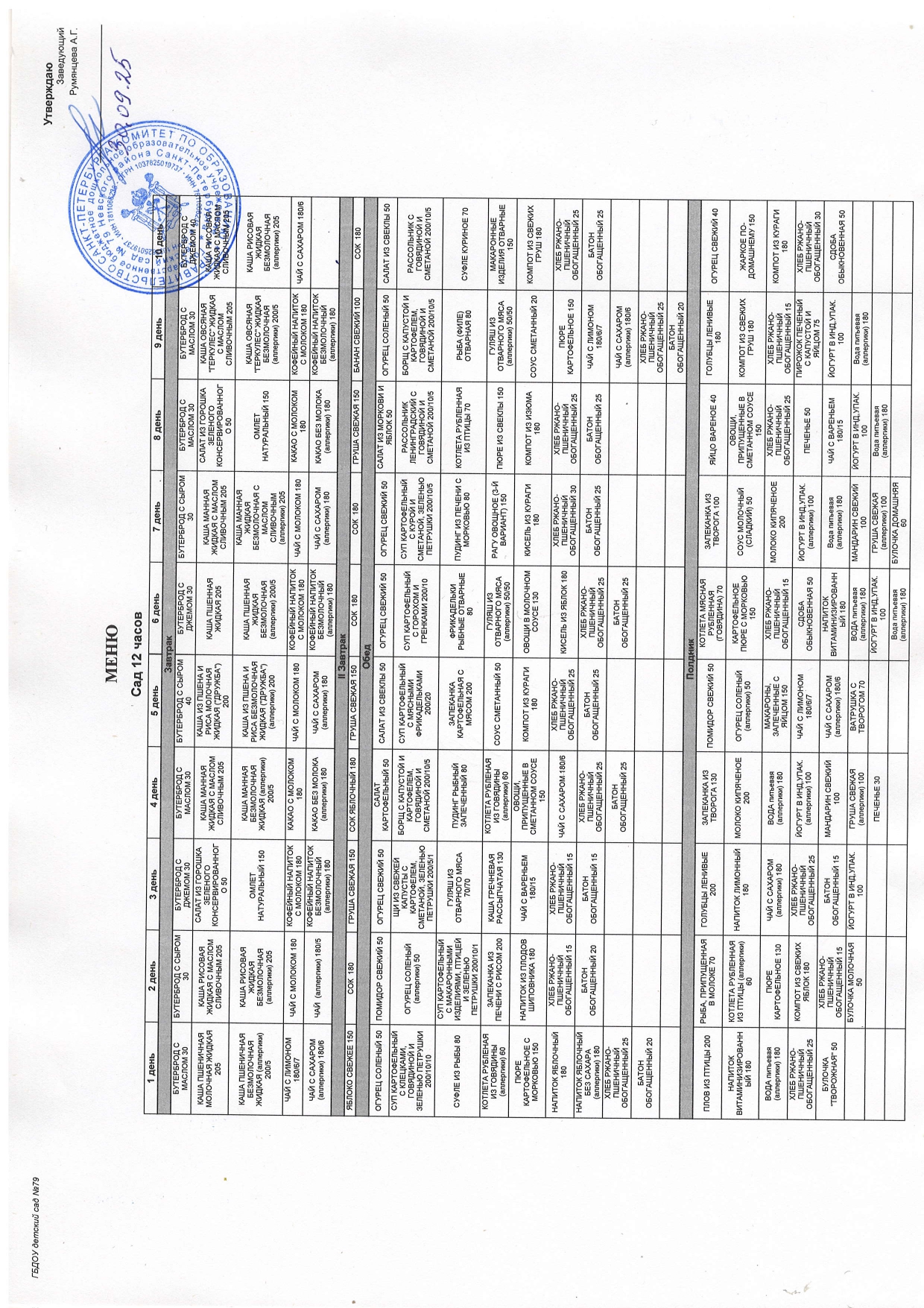 – основное (организованное) меню (дифференцированное по сезонам и возрасту), которое размещается в виде сканкопии утвержденного документа по установленной законодательством форме; |