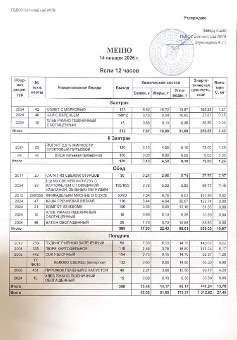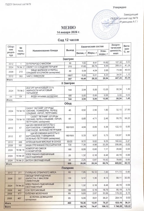 Меню ежедневного горячего питания на 14.01.2026 г.