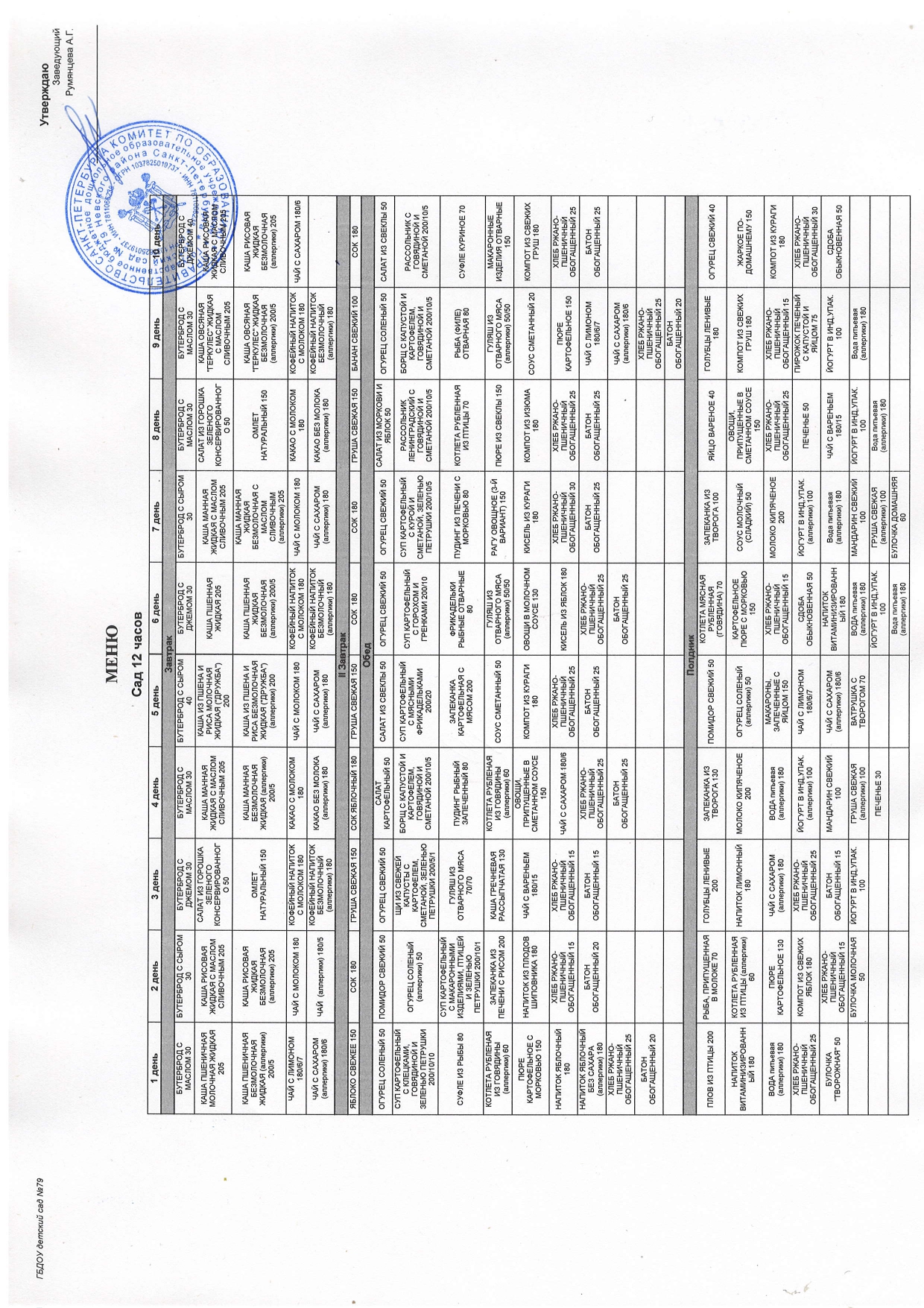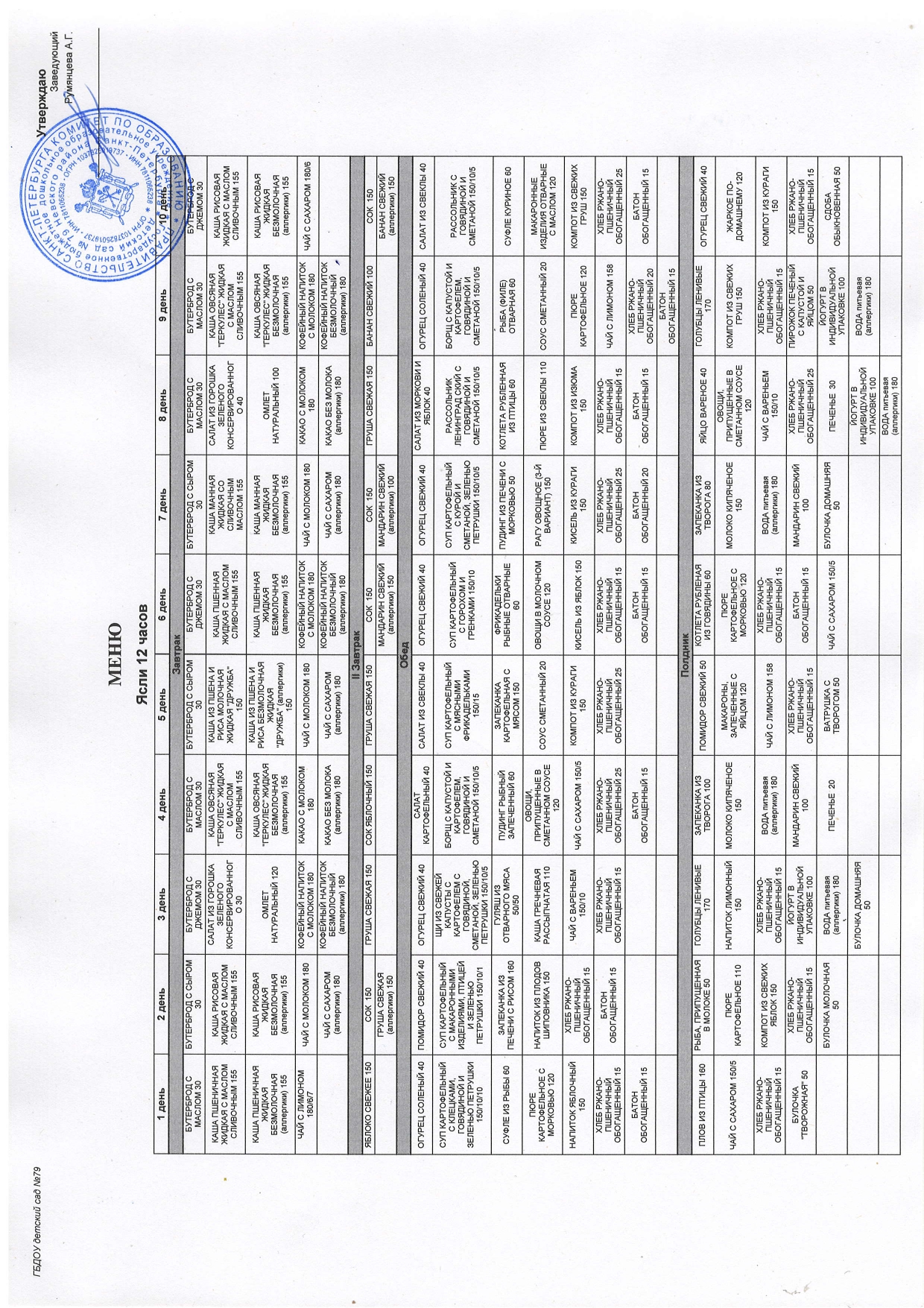 – основное (организованное) меню (дифференцированное по сезонам и возрасту), которое размещается в виде сканкопии утвержденного документа по установленной законодательством форме; |